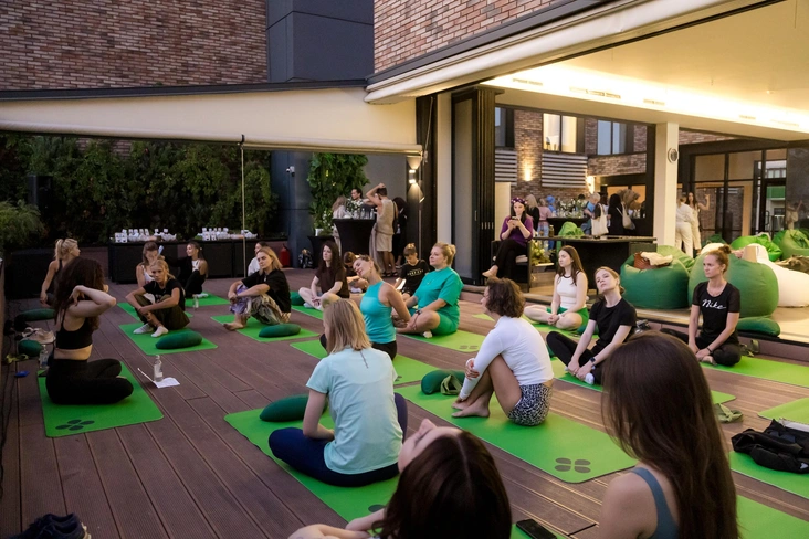 Участники побывали на мастер-классе по йоге и узнали принципы формирования сбалансированного и здорового рациона от приглашенного нутрициолога.