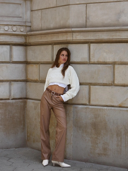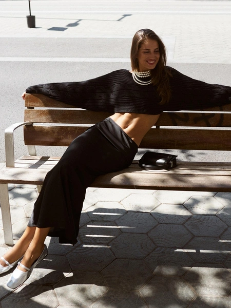 To Be Blossom показал первый дроп осенне-зимней коллекции, в который вошли изделия из экокожи — юбки-макси и брюки свободного кроя в базовых расцветках. Линейка обуви в новом сезоне пополнилась актуальными моделями: ботильонами и челси из натуральной кожи и кедами с утепленной подкладкой из меха.