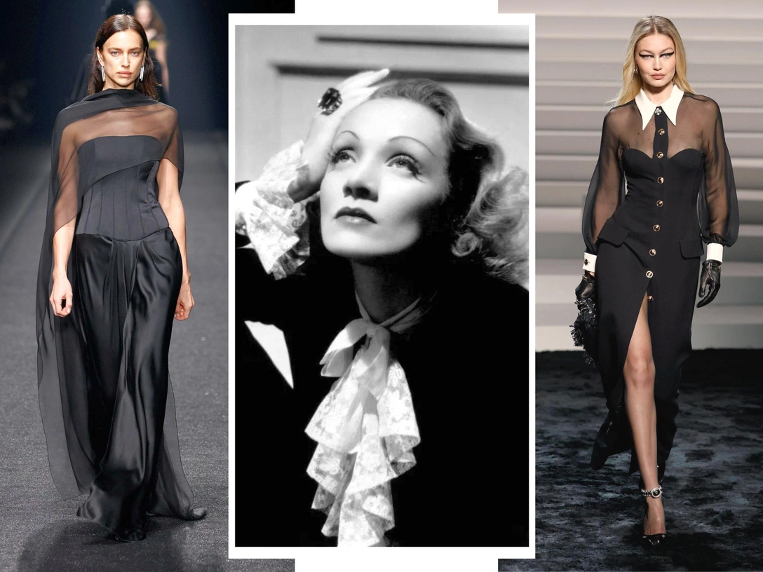 Альтернатива черному платью — вельветовый брючный костюм, именно он и был в гардеробе Марлен Дитрих. Его знаменитость носила со строгими рубашками в мужском стиле или с романтичными блузами, украшенными рюшами, бантами, галстуками и лентами.