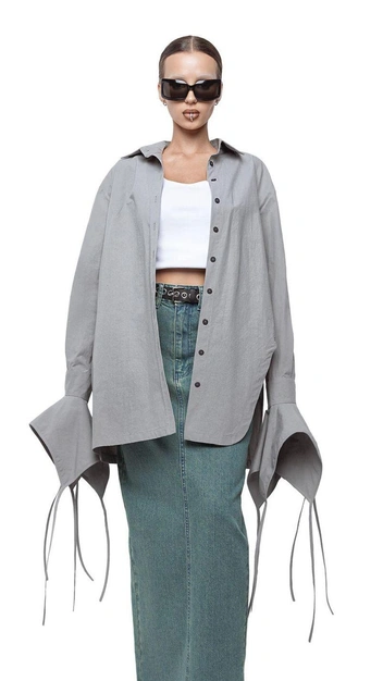 Объемную и длинную модель вы можете сочетать с джинсами, юбками, классическими брюками, носить поверх топов и платьев. Такая рубашка станет идеальным предметом одежды как в офисном дресс-коде, так в повседневном или вечернем, ведь ее можно и заправить, и выправить, а также закатать у нее рукава.