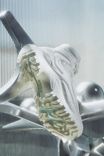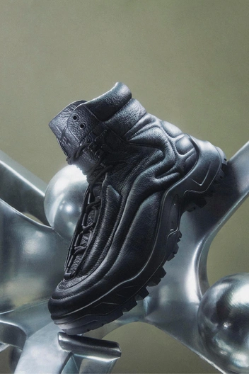 Команда визионеров RAL7000STUDIO разработала обновленную версию своей ключевой модели — ботинок OFFROAD. Вместе с брендом ECCO они объединили авангардный дизайн и инновации для комфорта. Благодаря массивному силуэту и объемным деталям пара напоминает стиль культовых Moon Boot. Еще более футуристичными ботинки делает стеганый верх из технологичной кожи DYNEEMA.