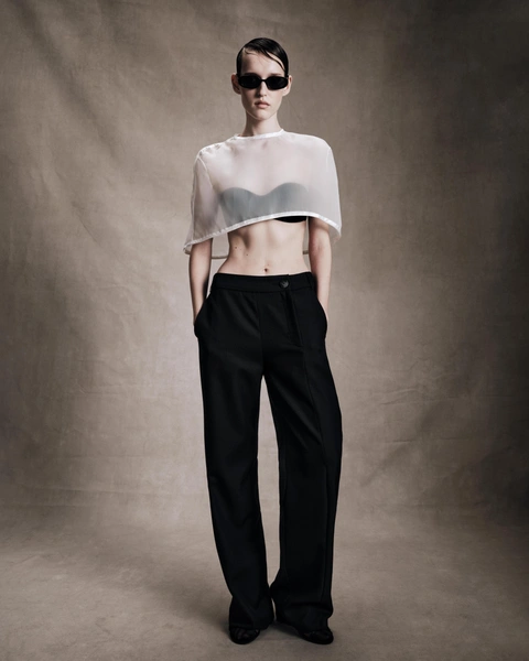 В основе женской коллекции — брючные костюмы из бархата, платья-комбинации с пайетками и бантиками, блестящие юбки, блузы с камнями, шубы и шифоновые платья с ворсом. Романтические детали, банты, серебряные пайетки отсылают к тренду Coquette core и футуризму, а черное кружево, деним с серебристым накатом, шуба из длинноворсового и объемный трикотаж, передают стиль гранжа. В мужской коллекции дизайнеры предлагают сочетать изделия, создавая вариативные образы на любой случай. Среди ключевых айтемов: футболки с металлизированным принтом, пиджаки комфортного кроя, сатиновые рубашки, брюки объёмного силуэта.