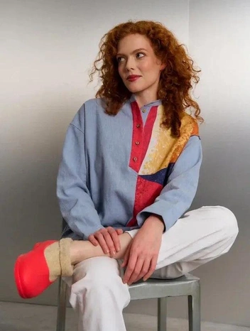 К проекту «Частицы красоты» присоединился и бренд одежды Murkott. Абстрактная мозаика с фасада Института стекла в Москве вдохновила дизайнеров на создание лимитированной рубашки из крапивы. Она сделана в фирменной технологии Murkott из крапивы с ярким принтом. Красная полоса на воротнике также отсылает к авангардистам и русской косоворотке, и одновременно остается частью мозаичного узора.