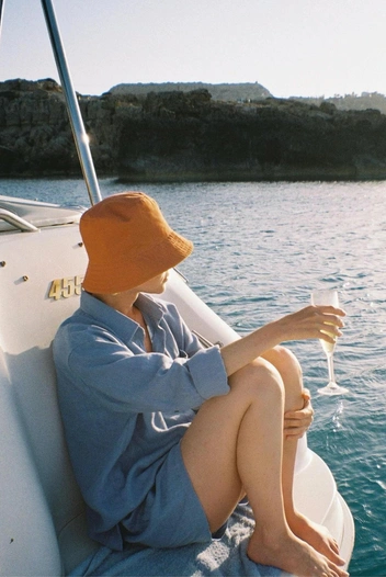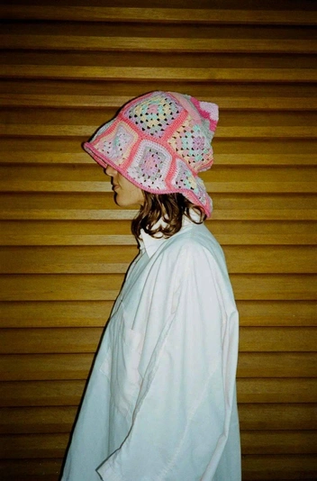 Марка появилась на волне популярности кроше в апреле 2021 года и начала делать балаклавы в этой технике, а затем — топы, купальники, косынки, береты и панамы. Последние повторяют форму цветка-колокольчика и имеют укрепленные поля, чтобы их можно было носить как поднятыми, так и опущенными. Но главное в этом головном уборе — духоподъемные цвета: лишь от одного вида панамы невольно улыбаешься.
