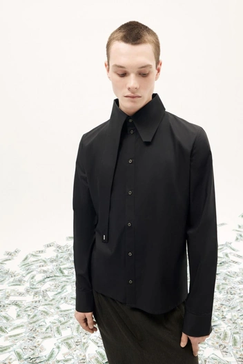 WHO / AM разбавляют классические модели асимметричными деталями, разрезами и запоминающимися принтами. И даже такая знакомая модель, как рубашка в клеточку, предстает в новом свете благодаря тканевому капюшону.