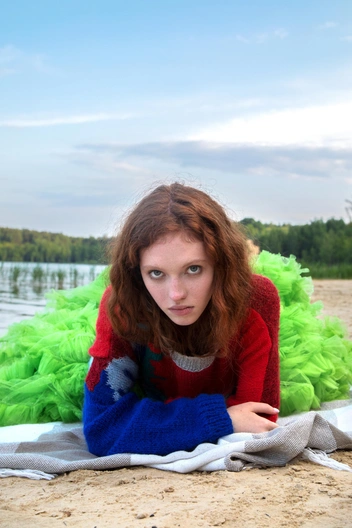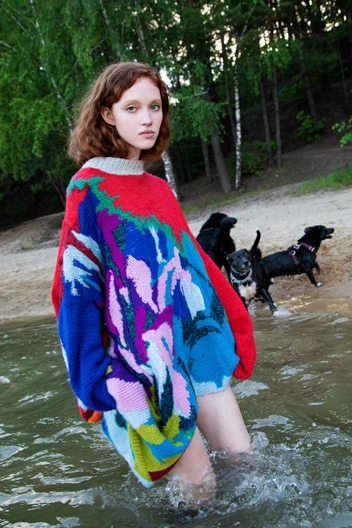 Эффектный образ на красную дорожку или на каждый день готовит еще один дизайнер из БВШД — Дарья Сорокина. В ее уже культовой зеленой юбке ходят Ольга Серябкина и другие звезды, а свитер асимметричного кроя с принтом станет звездой любого образа. Его можно носить как платье или сочетать с денимом, кожей, юбкой-карадаш и бермудами.