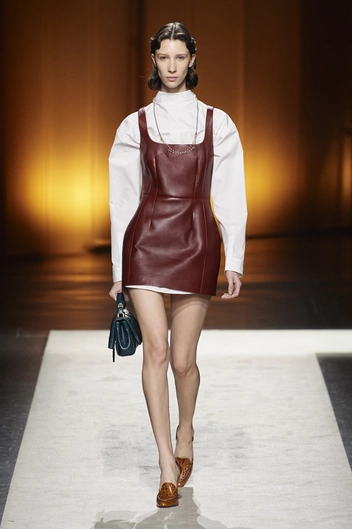 Пожалуй, самое универсальное приобретение этого сезона — мини-сарафаны, с которыми вы можете составлять образы не только в осенне-зимний период, но и в весенне-летний сезон. В теплое время носите их с футболкой ли на голое тело, а с наступлением холодов комбинируйте так, как советуют дизайнеры: Tod’s предлагает дополнить кожаный сарафан классической рубашкой, а Versace — красочной водолазкой с психоделическими принтами.