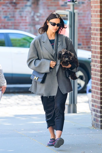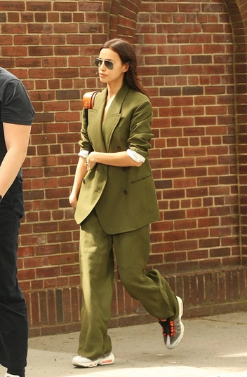 Модный майндсет Ирины — тратить на сборы не больше десяти минут, но всегда выглядеть роскошно. Все благодаря легкой непринужденности и верности минимализму, которых Шейк добивается с помощью объемных свободных силуэтов. Ее брючные костюмы выглядят так, как будто она одолжила их у бойфренда, ее верхняя одежда всегда на несколько размеров больше, ее обувной гардероб часто напоминает мужской стиль. И хотя такой подход не подчеркивает фигуру, выглядит модель всегда сексуально.