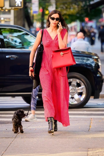 Винтаж и бренды, известные только узкому кругу — это безусловно, прекрасно, но широкую русскую душу трудно удержать от вещей, буквально кричащих о том, что жизнь удалась. В случае Ирины Шейк атрибутом роскоши стали сумки Hermes — тут и Kelly в красном цвете с золотой фурнитурой, и крокодиловая Birkin, и более сдержанная Constance.