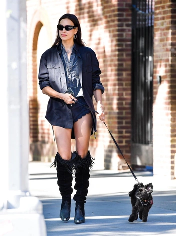 Выше мы уже писали, что если Ирина Шейк и решает удариться в ностальгию, то выбирает стиль 90-х или даже 80-х, но никак не десятых годов. Ирина нежно обожает гранж: рваные ткани, асимметричные подолы, крупная рокерская обувь. А также ретро: если раньше модель носила очки авиаторы в стиле Виктории Бекхэм, то теперь делает выбор только в сторону спортивных вариантов.