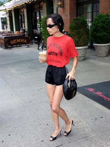 Не стоит забывать и про работающую схему «чем меньше стараешься — тем больше выигрываешь». Ее уже показали звезды: Белла носит сумку за три тысячи долларов с оверсайз-джинсами и кроп-топом, а Зои и Розэ из Blackpink стилизуют с самыми базовыми спортивными шортами и зип-худи. И это вовсе не про нежелание наряжаться — а скорее про то, что сумка в таком образе получает шанс стать самым главным акцентом.