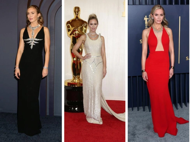 Номинантка на премию «Лучшая актриса второго плана» Эмили Блант, она же экранная супруга Киллиана Мерфи в «Оппенгеймере», излучала абсолютную непринужденность в гламурных платьях на протяжении всего сезона наград. Воссоединившись со своими коллегами по фильму «Дьявол носит Prada» (в частности, с оскароносным дуэтом Мэрил Стрип и Энн Хэтэуэй), чтобы вручить премию SAG Awards, Блант заслужила одобрение своего гардероба в этом сезоне от самой Миранды Пристли.