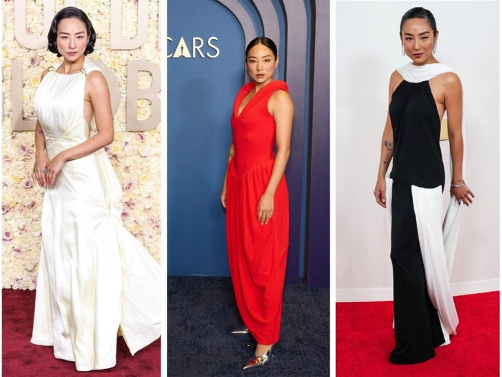 Грета Ли — еще одна прорывная звезда, получившая признание благодаря главной роли в фильме 2023 года «Прошлые жизни», где рассказывается о жительнице Нью-Йорка (Ли), которая воссоединяется спустя время и расстояние со своей любовью детства. Частое сотрудничество Греты с роскошным испанским домом моды Loewe в этом сезоне было почти таким же захватывающим, как неоспоримый талант актрисы. От одной ковровой дорожки к другой наряды Ли сочетали элегантные элементы Старого Голливуда с авангардными экспериментами.