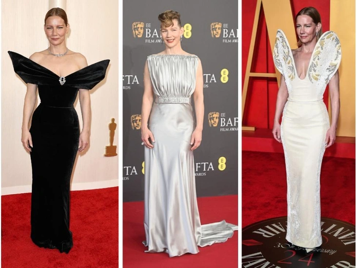 Немецкая актриса Сандра Хюллер — женщина-талант. Снявшись сразу в двух номинантах на премию «Лучший фильм» («Анатомия падения» и «Зона интересов»), Хюллер вступила в сезон наград в нарядах, бросающих вызов гравитации, от таких дизайнеров и модных домов, как Schiaparelli, Valentino и Louis Vuitton. Нужно признать, что фантастические стильные творения во многом обратили внимание общественности на Сандру больше, чем некоторые ее незаслуженно оставшиеся в тени киноработы.