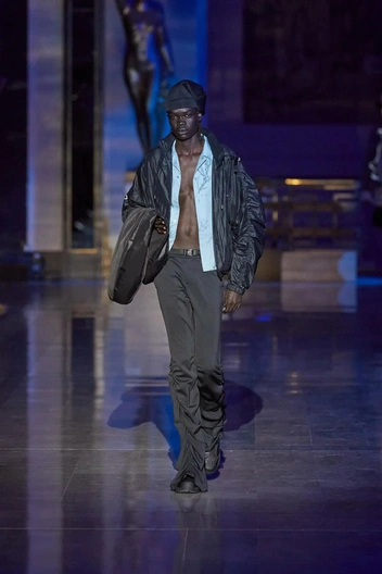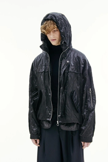 Черная ветровка от русского бренда Novaya точь-в-точь повторяет ту, что была представлена на недавнем показе Wooyoungmi Spring 2024. Черный цвет универсален и актуален, ну а необычности ему придает особая текстура, создающая впечатление «помятости» (грядущий сезон настойчиво просит нас избавиться от утюгов и отпаривателей). Чем не искусственная имитация вулканического пепла?