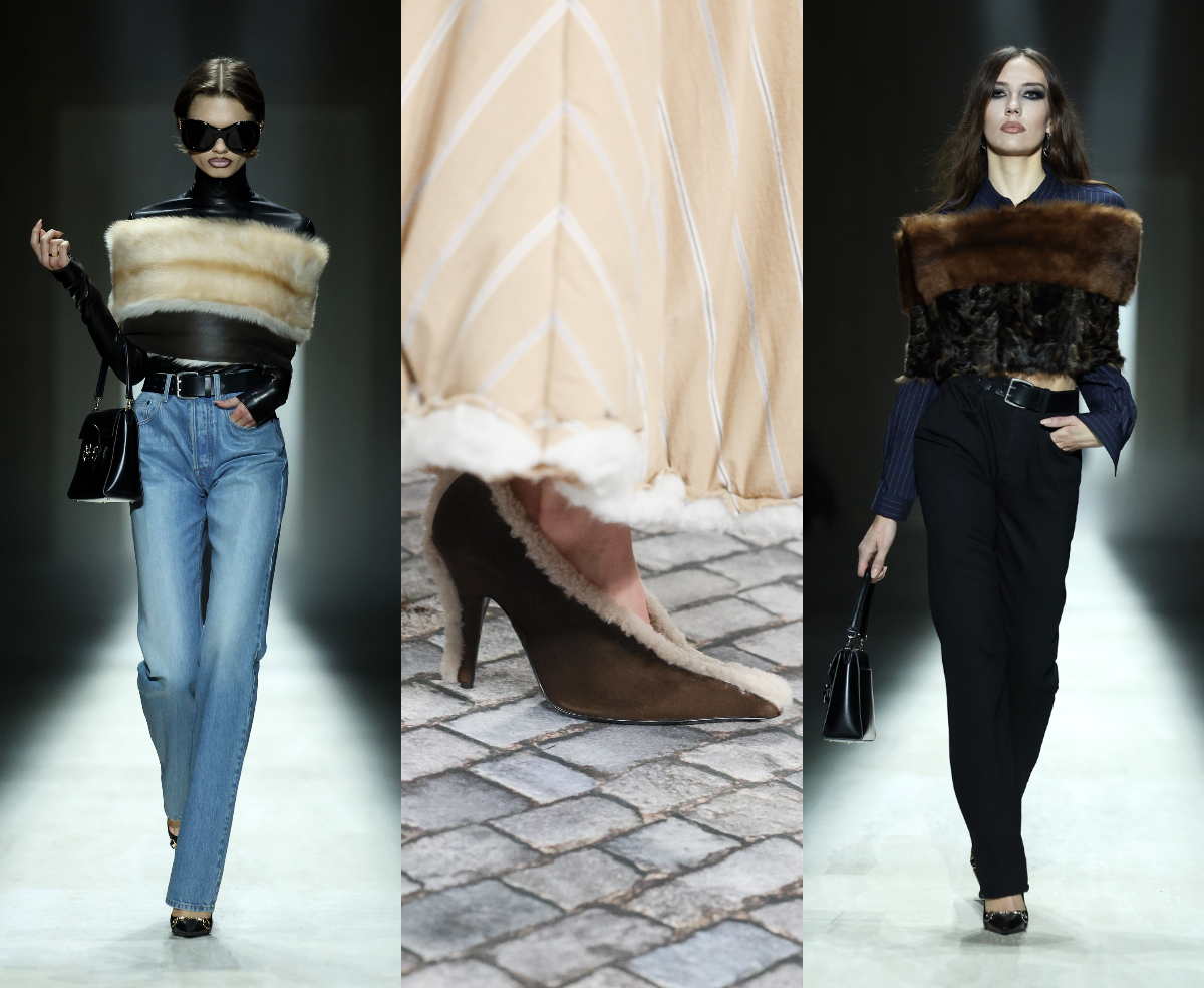 Меховые акценты больше не требуют повода «выйти в свет» — их спокойно вписывают в дневные образы, носят с денимом, строгими пальто и даже с минималистичными костюмами. Милан деликатно напоминает: тактильность — тоже важная часть стиля.