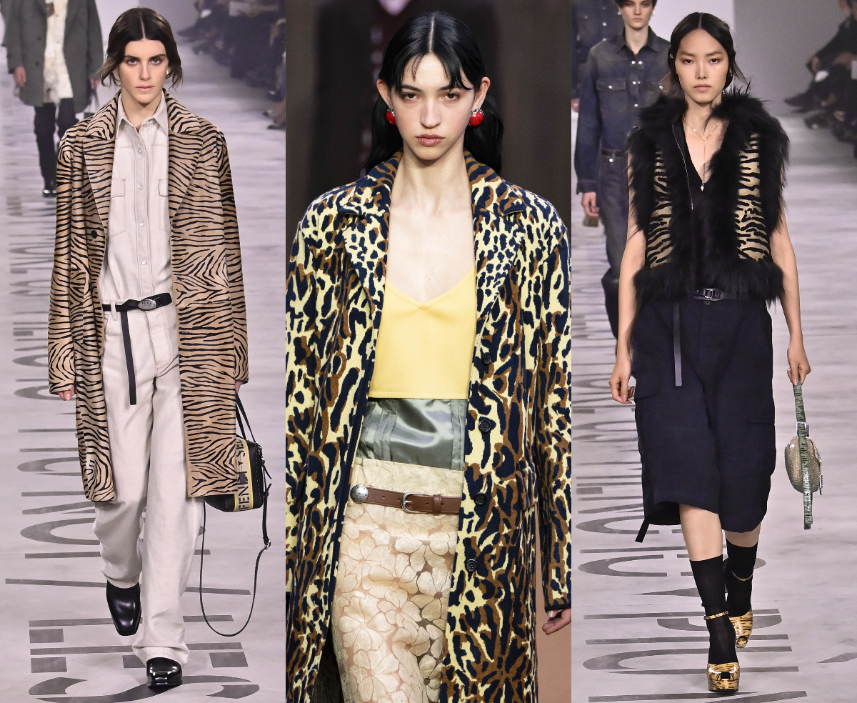 У Marni — элегантные пятна леопарда, будто нарисованные кистью художника: мягкие, чуть размытые, с оттенком романтики. У Fendi — дерзкие тигровые мотивы, которые работают и на верхней одежде, и на сумках, и на обуви (читайте также: «Тигр» сместит «леопарда» в 2026 году).