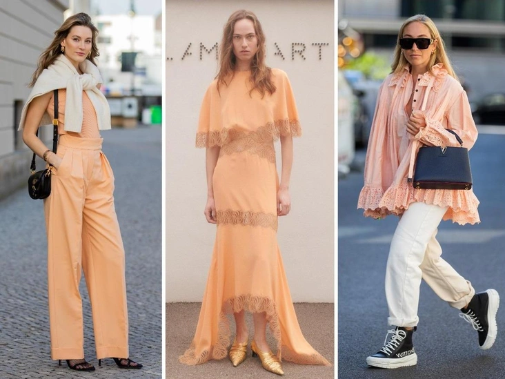 Эксперты Pantone черпали вдохновение в событиях, происходящих в мире последние несколько месяцев. Боевой настрой, к которому призывал предшественник Pech Fuzz, постепенно отходит на второй план. Агрессия и резкость, присущая бордовому оттенку, должна уступить место жизнелюбию и бескорыстию. Персиковый должен заставить нас чувствовать себя спокойнее и увереннее в завтрашнем дне. Он позволит сбросить с себя защиту и довериться окружающему миру. Пришло время отказаться от кричащих оттенков и внедрить в свой гардероб нечто нежное и воздушное. Если вы привыкли отдавать предпочтение темной цветовой гамме, попробуйте разбавить ее чем-то светло-оранжевым, как на фото ниже: вы отметите, насколько поменяется ваша энергетика (читайте также: Как правильно составить карту желаний на 2024 год — чтобы сбылось все и даже больше).