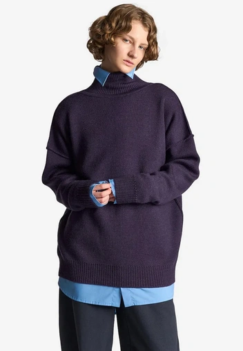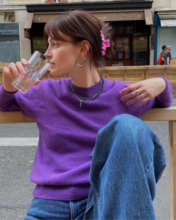 Фиолетовый джемпер + темно-синие джинсы = выразительно и свежо.