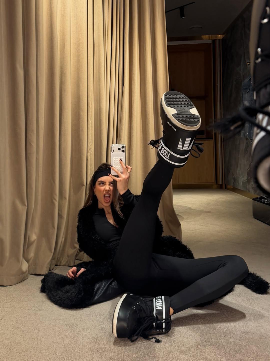 А еще нельзя не отметить, что модели клеш стали настоящим хитом зимы 2025-2026. И, кажется, не планируют отступать. Вообще, bootcut-легинсы, как подсказывает название, изначально созданы для того, чтобы красиво ложиться поверх полусапог. Однако в этом сезоне они отлично работают практически с любой обувью — от уже упомянутых угг до спортивных ботинок.