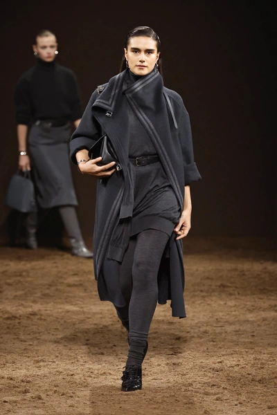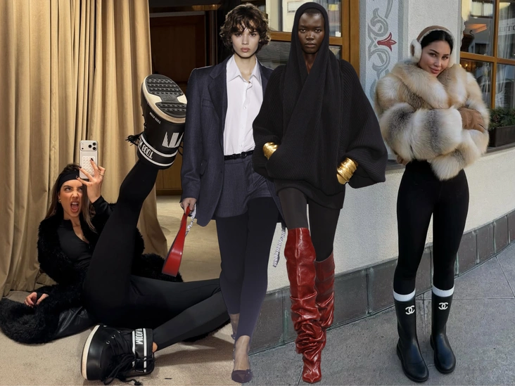Над этим потрудились сразу несколько брендов. В сезоне осень-зима мы видели их на подиуме у Hermes, Prada, Acne Studios, Balmain, Coperni и других известных Домов. А еще вернуться легинсам помог тренд сразу на две эпохи — нулевые и десятые, которые подарили нам эстетику model off-duty в соцсетях, а также восьмидесятые, когда они были на пике из-за культа спортивной формы (читайте также: Тренды 2026 по версии Pinterest: вампирская эстетика, броши и песочные тона).