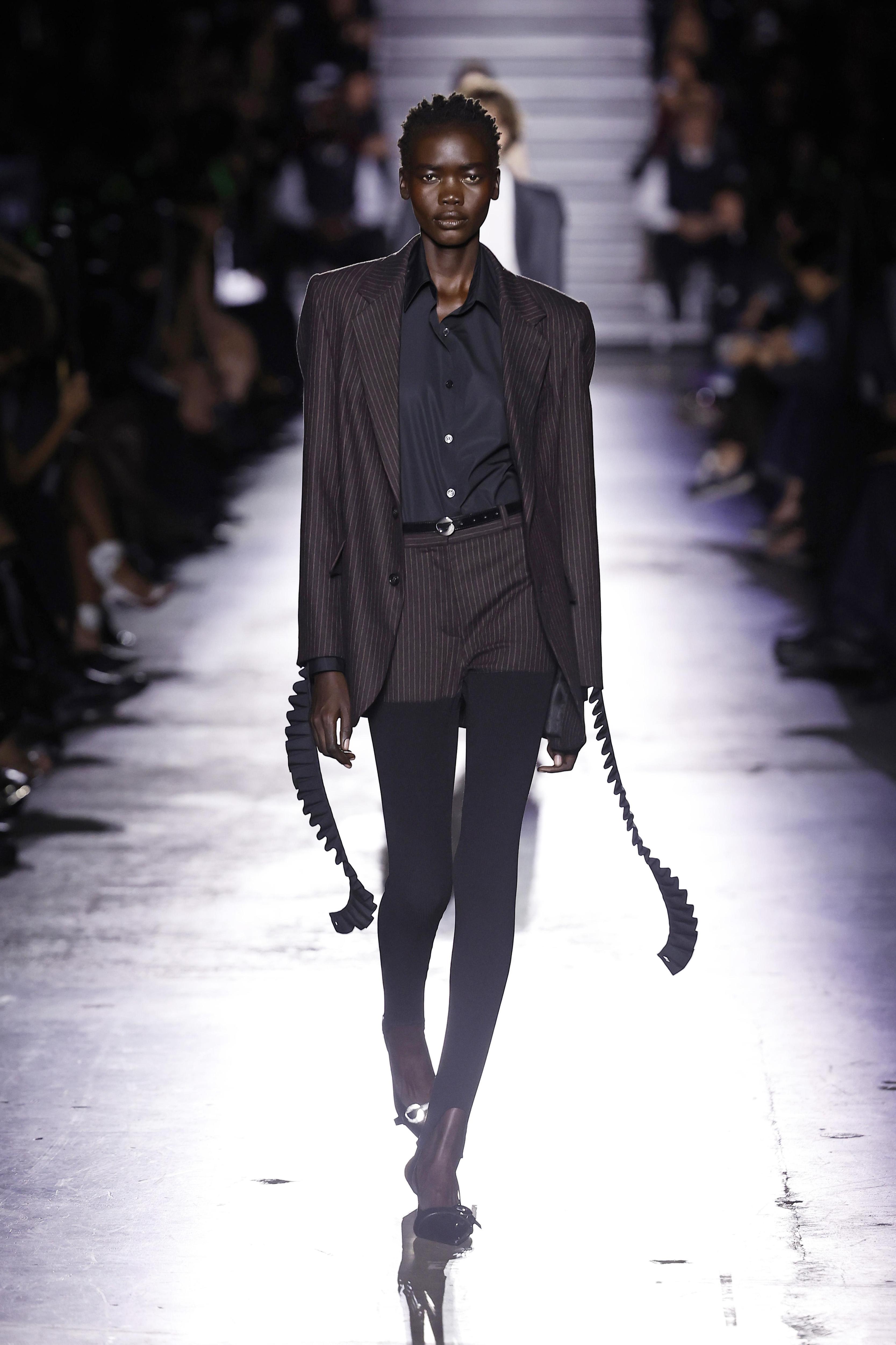 А еще за вдохновением стоит обратиться к показам. Вариативность носки легинсов у брендов гораздо выше, чем у инфлюенсеров из соцсетей. Например, Balmain и Coperni взяли курс на штрипки, актуальные пару лет назад. И эта модель полностью оправдывает себя: ее можно носить любым из уже указанных способов, а еще создавать акцентные образы с туфлями киттен-хилл. Не зря подобные сочетания очень любит Эльза Хоск — это простой, но всегда удачный способ сделать свой наряд гораздо более стильным.