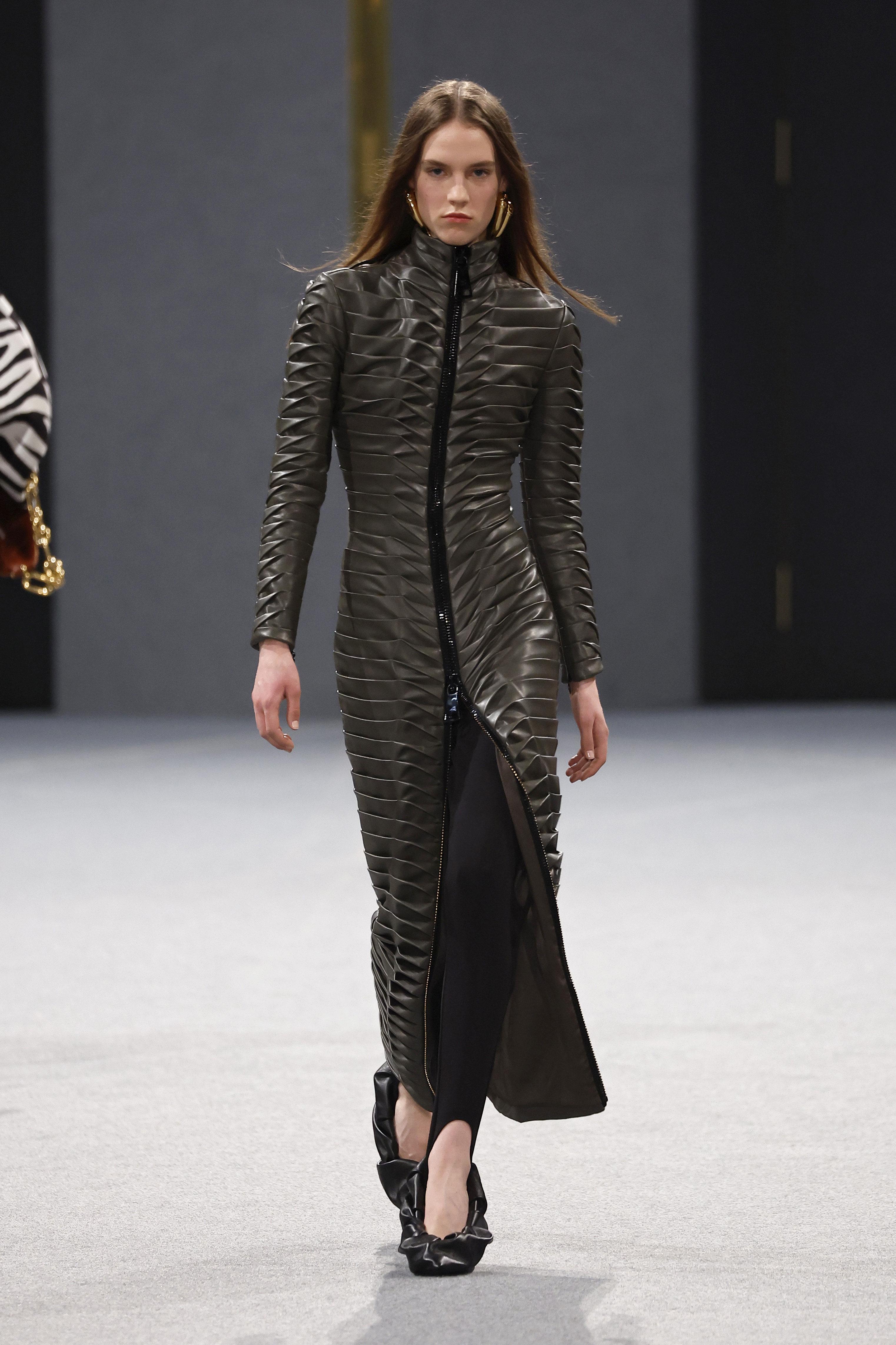 Следом забираем идею носить легинсы не только с укороченной, но и удлиненной одеждой. Balmain, к примеру, сочетали их с платьями в пол и мини-юбками, а Hermès добавляли к ним удлиненные джемперы из тонкого трикотажа.