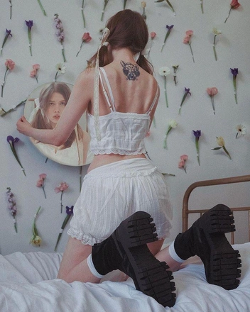 Мода — это определенно искусство, ведь мода и художники переплетаются и связаны, так было всегда. Наши принты выбирались совместно с авторами. Они не обязательно должны что-то значить: главное, что они, как и автор, нравятся нам, мы видим пересечение — этого достаточно. А смыслы в графике каждый видит свои. Например, для коллаборации с Дашей Патрик мы выбрали картину REBORN, где существо само перерождает себя, поглощая. Эта мыслеформа была актуальна для бренда — тогда у нас была стадия, когда все становилось по-новому.