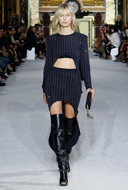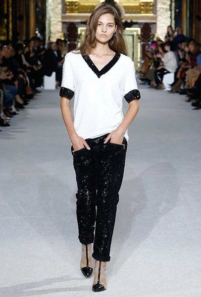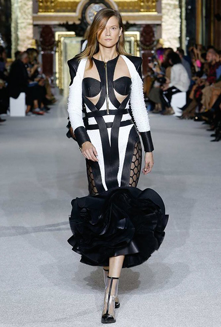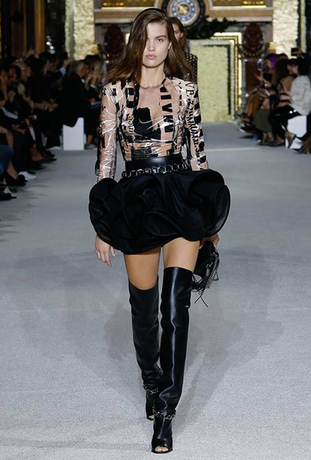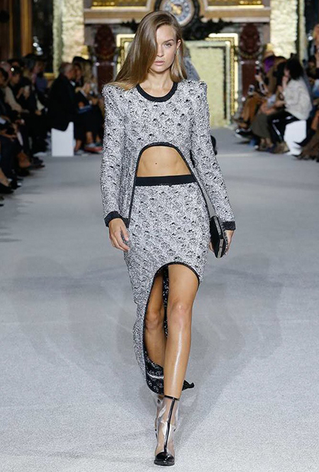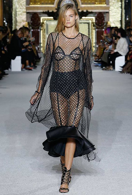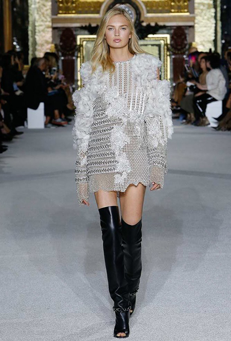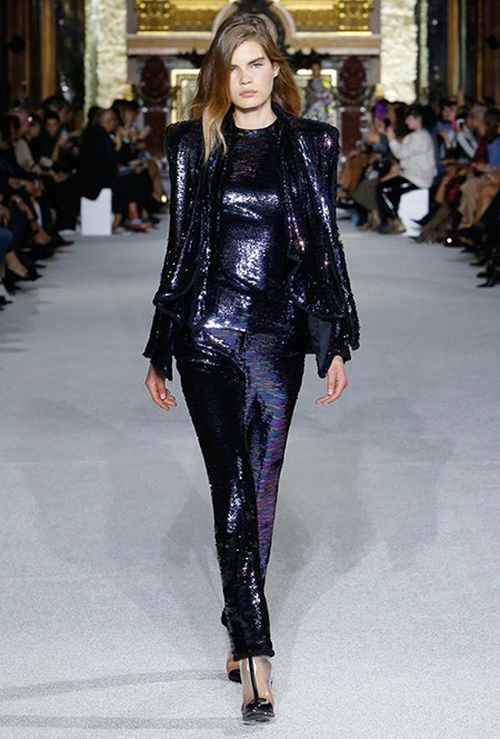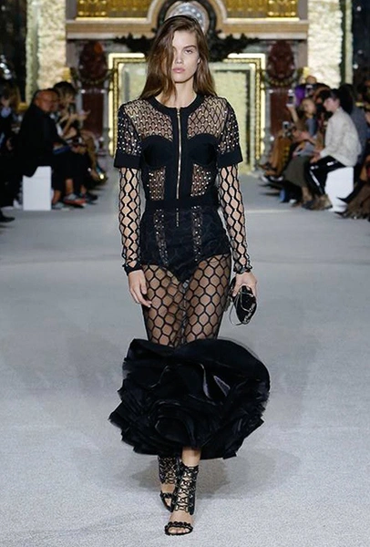 Показ креативный директор Оливье Рустен провел в здании Опера Гарнье в память о самом ярком воспоминании своего детства – когда вместе с приемными родителями он впервые приехал в Париж и отправился на балет. «Парижскому великолепию» была посвящена и вся новая коллекция. Один только кастинг моделей чего стоил. Открыла шоу Наталья Водянова, которая уже давно появляется на подиуме только в исключительных случаях, закрыла – не менее звездная дива (и тоже русская) Наташа Поли.