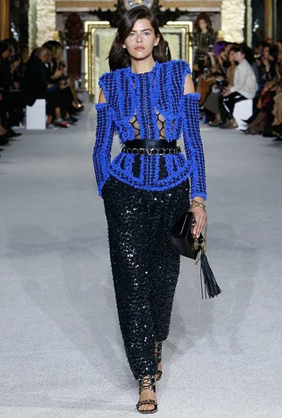 Но самым «парижским» на показе все-таки был финальный блок. Он состоял из вещей со вставками неоновых цветов – ярко-красных и пронзительно-синих. Иногда они сочетаются в одном образе, вызывая ассоциацию с картинами Тулуз-Лотрека и манящими и яркими вечерними огнями большого города.