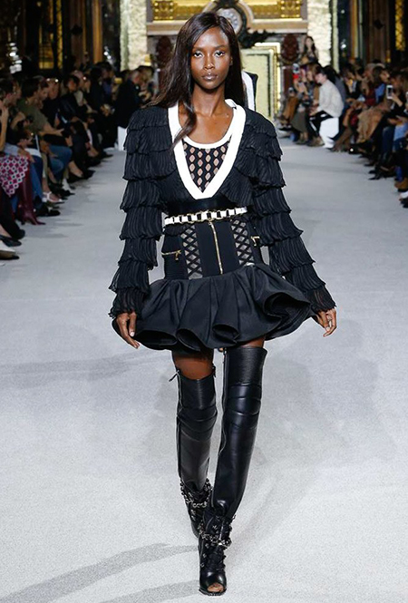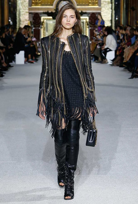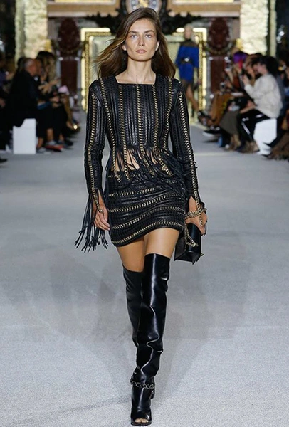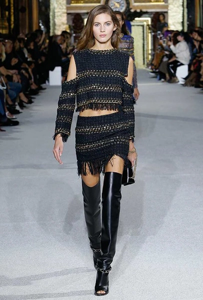 Иногда они пришиты к подолам платьев, узких юбок и к краям рукавов. Иногда – из них, собственно, и состоят ультракороткие юбки. Носить эти экстравагантные «мини» их Рустен рекомендует, разумеется, с эффектными, длиной до середины бедра черными ботфортами.