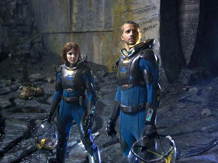 В приквеле к фильму «Чужой» режиссер Ридли Скотт хотел, чтобы скафандры героев выглядели более современно, чем в его классической научно-фантастической ленте 1979 года. В интервью художник по костюмам Джэнти Йэтс сказала, что ее первоочередной задачей было избежать сравнений со скафандром NASA, похожим на костюм из рекламы Michelin. Шлемы, которые носили Элизабет Шоу (Нуми Рапас) и Чарли Холлоуэй (Логан Маршалл-Грин), были созданы компанией по реквизиту FB-FX. «Ридли хотел, чтобы шлем был похож на яйцо. Поэтому мы создали около 100 000 различных вариантов, пытаясь получить правильную форму», — сказала Йейтс.