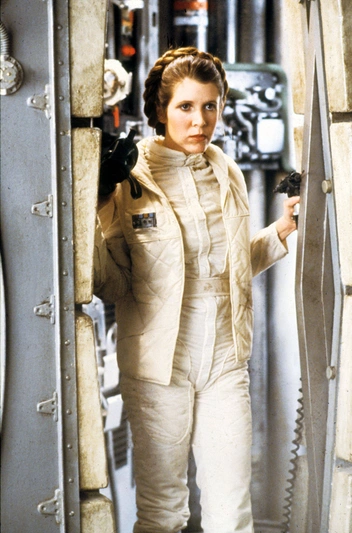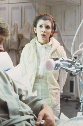 За работу над нарядами в ленте «Звездные войны. Эпизод IV: Новая надежда» художник по костюмам Джон Молло получил премию «Оскар», а вскоре вернулся в продолжение и создал этот скромный костюм для принцессы Леи, роль которой исполняла Кэрри Фишер). Образ выглядит намного менее футуристично, чем мы привыкли. В кадре актриса носит кремовую стеганую куртку и утепленный комбинезон — ансамбль идеально подходил девушке, попавшей в беду и ставшей командиром.