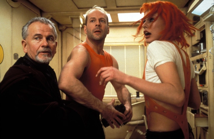 «Пятый элемент» — одна из самых известных картин Люка Бессона. Наряды для ленты разрабатывал дизайнер Жан-Поль Готье, который создал более тысячи ярких костюмов не только для главных, но и для второстепенных персонажей: от футуристических костюмов официантов McDonald's до смелых и откровенных образов бортпроводниц в шляпах-пилюлях. Кутюрье черпал вдохновение в своих старых коллекциях и переосмысливал их для сюжета ленты. Но какими бы продуманными ни были образы других персонажей, самыми культовыми по-прежнему остаются бандажный наряд Миллы Йовович и оранжевая майка Брюса Уиллиса.