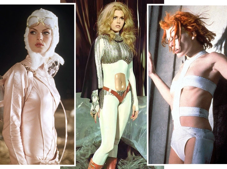 Сложно представить более соблазнительный (или менее практичный) скафандр, чем тот, который носила Джейн Фонда в культовой классической ленте «Барбарелла» 1968 года. Фильм снимал ее бывший супруг Роже Вадим, и в этой ленте Фонда точно предстает во всей красе. В кадре героиня носит несколько нарядов, ставших культовыми, и один из самых известных — образ из металлизированного боди в паре с ботфортами, который создал модельер Пако Рабан.