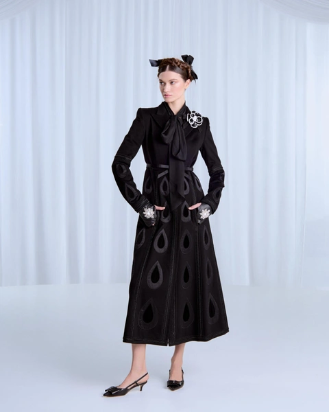 Коллекция стилистически близка к атмосферной эстетике новой кинокартины «Грозовой перевал». Романтичные платья с паутиной кружев и архитектурными драпировками, а также коктейльные варианты с атмосферными принтами и мягкими линиями создают ощущение драматичности и глубины образа.