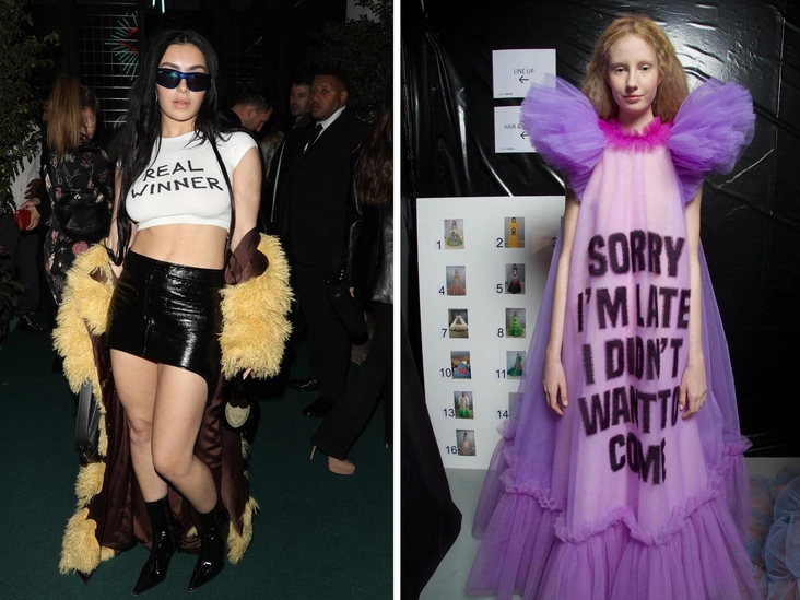 В 2020-х же сначала случился камбек нулевых. Все снова захотели носить майки как у Пэрис и Бритни. Теперь иконой заявлений стала вышеупомянутая Charli XCX, которая в 2022 году начала снова задавать тренд на яркие надписи. Всего за несколько часов до выхода альбома Crash, певица появилась в коротком топе с надписью «Критикам памятников не ставят».