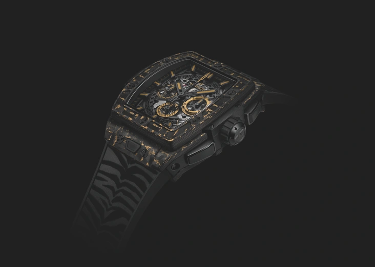 Hublot Spirit of Big Bang Carbon Gold Tiger оснащены скелетонизированным хронографом с автоматическим подзаводом HUB4700, преемником культового Hublot El Primero 1969 года. Часы обладают 50-часовым запасом хода и водонепроницаемостью до 100 метров. Новинка представлена ограниченным тиражом — всего 200 экземпляров, каждый из которых уникален.