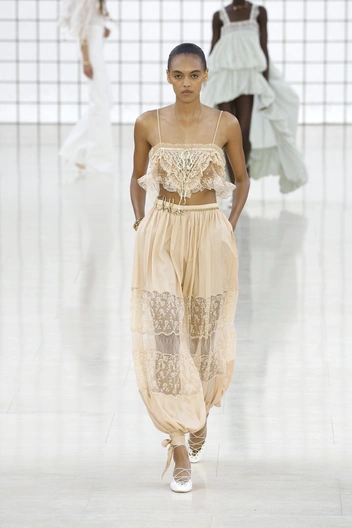 Расслабленный восточный стиль хорошо смотрится с бохо, последователи которого тоже не любят узкие силуэты и строгие образы. Поэтому в качестве верха хорошо подойдут топы и рубашки с богемной эстетикой. Можно рассмотреть топы с воланами и кружевом, но особенно рекомендуем обратить внимание на удлиненные полупрозрачные туники с вышивками — это хит 2025 года. А под низ наденьте майку или кроп топ (читайте также: Не так великолепны: как на самом деле выглядели султанши Османской империи).