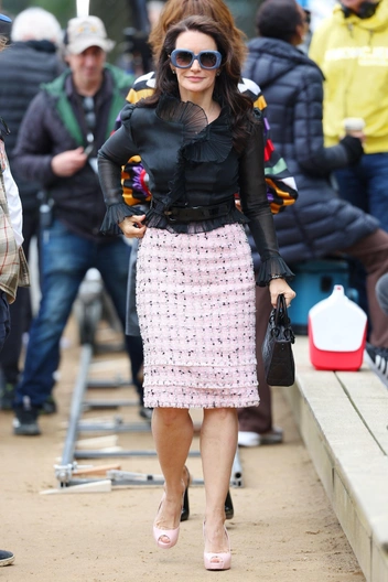 Что касается Шарлотты Голденблатт, то лето сменяет зиму, год следует за годом, а она продолжает одеваться в стиле американской домохозяйки 50-х годов. В третьем сезоне «И просто так» гардероб Шарлотты снова полон юбок-солнце, ее любимого розового цвета и сумок Chanel, которые отражают ее вневременной стиль. Ожидаемо, что многие образы были составлены из твида — ткани, которая в последнее время считается синонимом людей со «старыми деньгами». Но больше всего нас поразила сумочка Burberry, предназначенная для ухода за собакой во время прогулки — впрочем, кто бы сомневался, что Шарлотта не пройдет и полметра с прозрачным пакетиком (читайте также: 25 смешных и мудрых цитат о мужчинах из сериала «Секс в большом городе»). Итак, рассматриваем подробнее образы героинь третьего сезона «И просто так», который мы увидим совсем скоро.