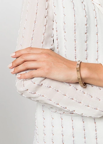 В 40: подчеркивайте статус лаконичным браслетом в паре с качественными часами; аккуратно миксуйте с подобными базовыми украшениями (читайте также: Перстни, жемчуг, гарнитуры: украшения, которые добавляют возраст).