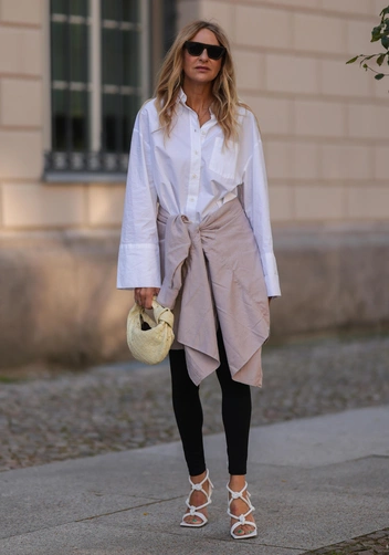 Разумеется, первыми элементами в этом списке окажутся вещи из базового гардероба. Например, рубашка свободного кроя, которую можно носить как с короткими юбками и кроп-топами вместо жакета, так и сочетать с классическими брюками, заправлять в прямые джинсы и подбирать к ней кроссовки или каблуки.