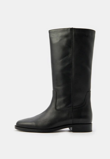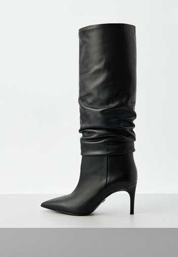 Тенденции в обуви переходят из сезона в сезон — и сапоги с голенищем «гармошка» это только подтверждают. Такая обувь — настоящее вложение, поскольку, опять же, едва ли выйдет из моды, а еще сочетается со всем от женственных образов до спорт-шика. Цвет рекомендуем тоже классический, который не выйдет из повестки и будет актуальным на сезоны вперед: к таким относятся черный, коричневый, бордовый.