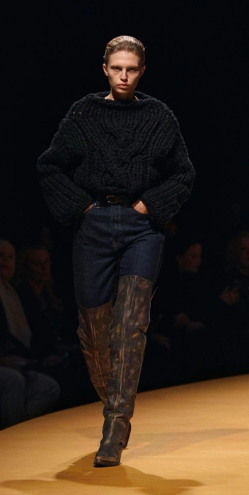 Эксперименты Марии Грации Кьюри с сапогами-сланцами сначала казались очередным приступом любви дизайнера к гладиаторской эстетике, но сейчас видим, что этот фасон подхватили и бренды помимо Dior. Воспринимать такие сапоги всерьез не рекомендуем, ведь они могут не продержаться в топах дольше года, а потому не считаются вложением в гардероб. Но как способ разбавить образы — почему нет?