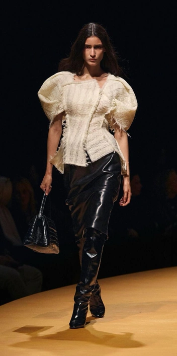 Рады, что тренд на плоскую подошву становится все популярнее, ведь это говорит о гуманном отношении к женскому организму. Например, в сезоне SS/25 не просто присутствуют, а буквально превалируют варианты обуви на плоском ходу. Несмотря на отсутсвие высокого каблука, смотрится сексуально — особенно в сочетании с высокой зоной голени.