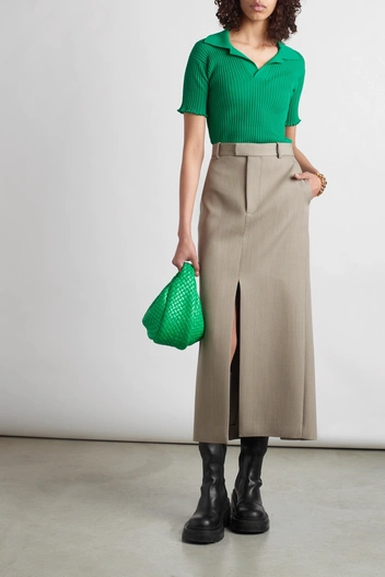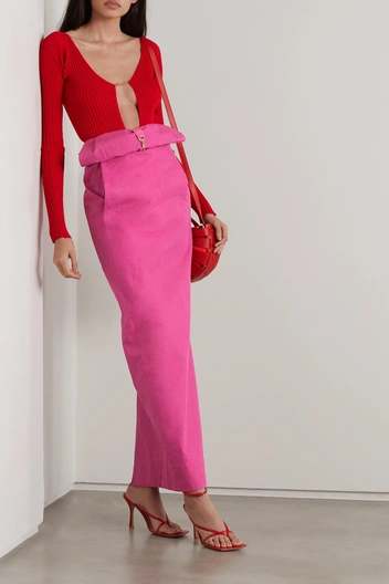 Трикотаж — материал, подходящий далеко не только для дождливой осени и суровой зимы. Раз за разом мы видим в коллекциях дизайнеров все новые и новые вариации трикотажных костюмов на лето — как с брюками, так и с юбками. На последние советуем обратить особое внимание: летом трикотажную миди-юбку можно носить с кроп-топами или оверсайз-рубашками с узлом на талии, а с наступлением зимы дополнять объемными свитерами и жакетами.
