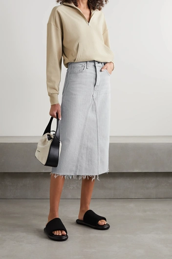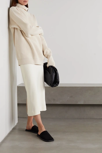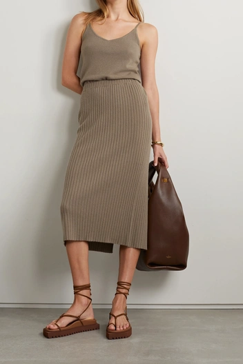 Миди-юбки из плотного материала — такое же универсальное решение, как и трикотажная юбка-туба облегающего кроя. Классические модели нейтральных оттенков легко интегрировать в разные капсулы: одну и ту же модель можно носить и на прогулку в город, и на деловую встречу, и на пляж (читайте также: Капсульный гардероб: чем он отличается от базового и как его собрать).