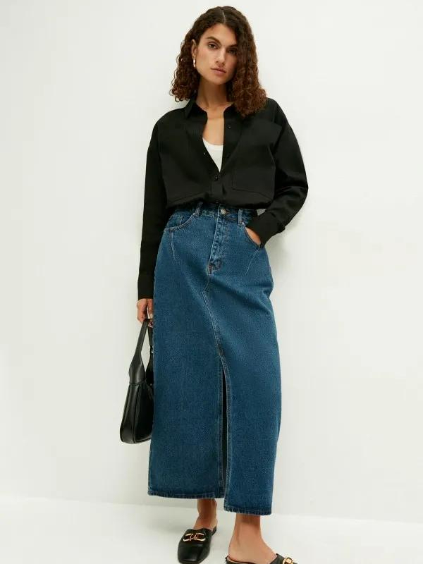 Деним — довольно комфортный и практичный материал, с которым дизайнеры нередко экспериментируют и в весенне-летнем сезоне, и в осенне-зимнем. Вариантов здесь может быть масса — как ультрамодные юбки с подиумов с активным декором, так и универсальные модели, выбранные под свой тип фигуры (читайте также: Как выбрать идеальную юбку по типу фигуры).