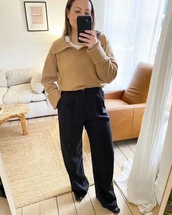 Вельветовые брюки смотрятся выигрышно с трикотажным или шерстяным верхом — особенно с деталями из меха или замши, которые придают образам еще больше уюта и глубины. Главное — избегайте слишком однообразных текстур, чтобы сохранить интерес и динамику вельвета (читайте также: Оправдывает ли себя покупка вещи из вельвета? Смотря как носить).