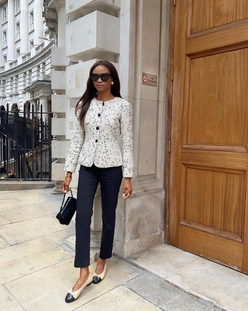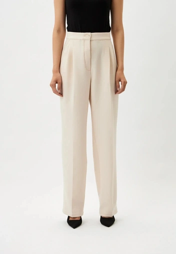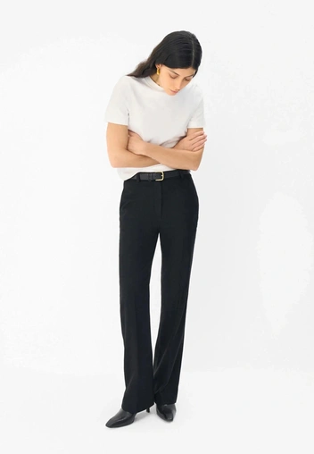 Брюки со стрелками идеально подходят для создания делового или вечернего лука. При стилизации играйте с фактурами: гладкие шелковые блузы или кашемировые свитера добавят объема, но не перегрузят аутфит. И безпроигрыщный варинт — костюм с жакетом в тон, который создаст образ уверенной и стильной современной женщины.